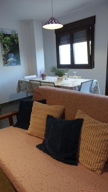 Habilitado para cinco personas, cocina comedor, salón, terraza y tres habitaciones, de las cuales una tiene cama de 150 , una de dos camas de 90, una ultima de una cama de 90 y dos aseos.