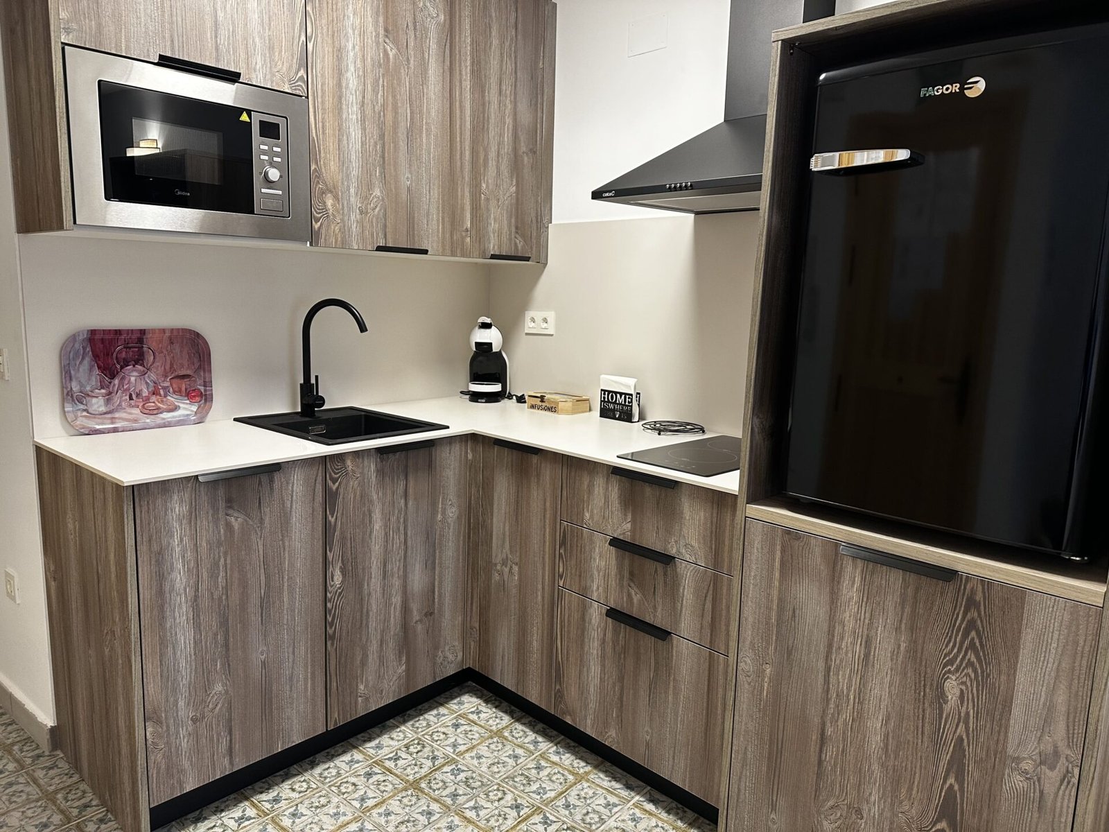 Horno-microondas, nevera, congelador, lavadora, lavavajillas, vitrocerámica, cafeteras clásica café molido y de cápsulas Nescafé Dolce Gusto, Plancha de ropa, Secador del pelo, TV.